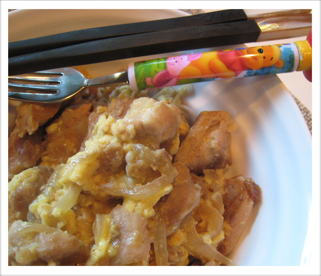 In an attempt to help things along, Emma and I left him to have a few minutes of peace and started to make some dinner. As we headed to the kitchen, I fondly remembered a restaurant I used to frequent back in the days when I was working – it was a little Korean place, with lots of booths, wonderful service (especially when they got to know you from seeing you repeatedly during the work week), and the most delightful smells. Oyako Donburi was my go-to on those days where things were c-r-a-z-y. Since we moved away, I don’t make the journey out to that restaurant (it is delicious, but it is an hour and a half away) and instead, have decided to try my hand at making it.