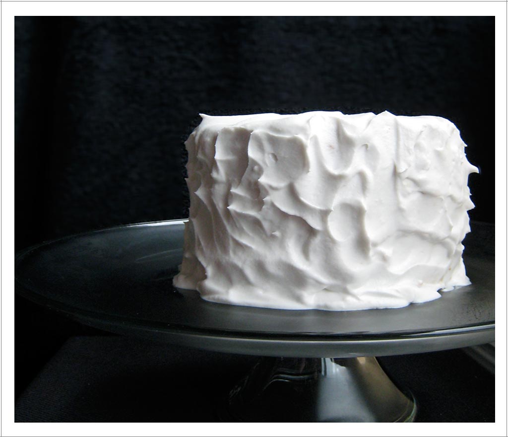 To make the “buttercream” icing for between the layers, mix together the Earth Balance, icing sugar and lemon juice adding a little more sugar to taste. Divide the mixture in half. Spread one half on the bottom layer of the cake. Place the middle layer on top of the icing and spread the other half of the icing on it. Then place the third layer on top. Refrigerate the assembled cake while preparing the coconut whipped cream.