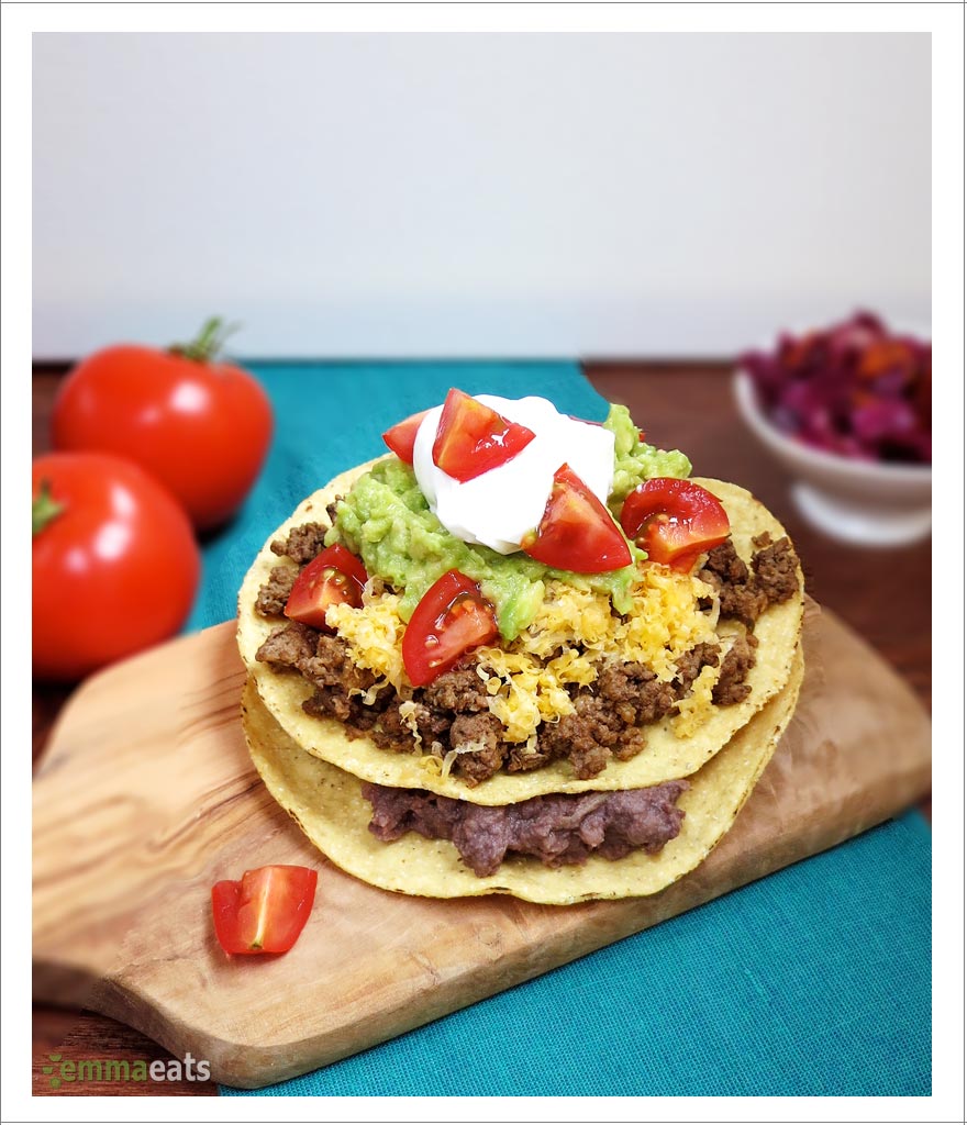 Often, parents complain about having to make multiple meals in order to accommodate their kids’ requirements. These tostadas truly are a perfect meal. No matter the tastes at the table, everyone can find a combination that suits them. It comes together in a flash which makes it just right for a weeknight dinner or for an impromptu casual dinner party. The kids will have fun as they can “choose-their-own-adventure” from the wide assortment of toppings and assemble sky-high piles on their plates. They’ll also enjoy watching you attempt to eat these with some finesse and to demonstrate your good table manners. Everyone leaves the table happy (possibly even giggling) and with full tummies.